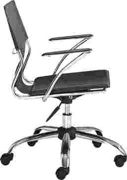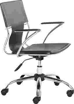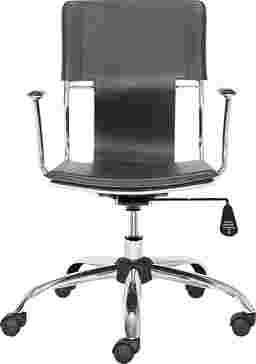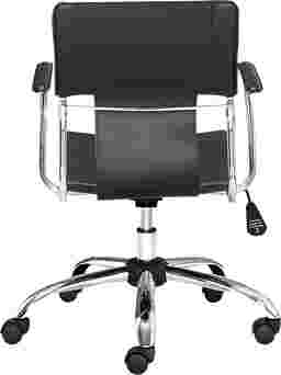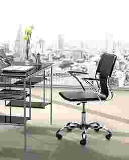 This fun and functional office chair combines a modern and transitional look. The Sacher office chair is made from a solid chrome frame, leatherette sling seat and arm pads, a chrome base, and an adjustable height mechanism. Customer assembly is required.