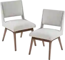 These chairs are a practical and stylish option for active homes. The light gray fabric is a neutral, forgiving tone that masks minor wear better than very light or dark colors. Additionally, the frame is supported by solid wood legs in a pecan finish, providing the structural integrity needed to withstand daily use. For maintenance, our care guides recommend regular dusting and prompt spot-cleaning with mild soap and water to keep the upholstery looking fresh.
