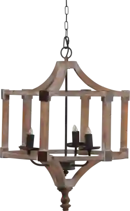 This chandelier is designed with 4 lights within an open cage frame. To enhance the "boho-industrial" style of the piece, we suggest using clear Edison-style LED bulbs. A warm color temperature (approximately 2700K) will highlight the textures of the whitewashed iron and create an inviting, rustic ambiance that suits both dining rooms and kitchens.