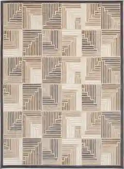 Add depth and dimension to your kitchen, garden, or patio with this beautifully designed and exceptionally durable area rug. Abstract geometric designs in neutral tones of taupe, charcoal, cream, and ivory create a brilliant multidimensional look, and a unique high-low weaving technique adds compelling texture. Whether its a quiet spot in the shade or a busy central dining area, this floor covering lets you infuse a bit of low maintenance, high-end design into your home without fear of staining or fading, even in high-traffic and spill-prone areas. These gorgeous floor coverings are fade resistant, stain resistant, and surprisingly comfortable underfoot thanks to soft polypropylene yarns, so you can spend more time enjoying your space and less time on maintenance. Easy to clean and machine made using state-of-the-art, computer-driven looms, these rugs are sure to maintain their exceptional durability and rich design for years to come. For indoor or outdoor use.