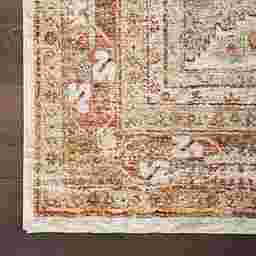 With its ornate design in ivory with neutral details and distressed finish, this vintage rug from the Sahar Collection adds a layer of traditional style and soft comfort to your space. Place this Persian rug in your living room, dining room, bedroom, or hallway for a warm and welcoming accent. Machine-made from polyester fibers that are easy to clean and maintain.