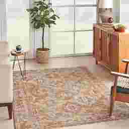 With its ornate design in ivory with neutral details and distressed finish, this vintage rug from the Sahar Collection adds a layer of traditional style and soft comfort to your space. Place this Persian rug in your living room, dining room, bedroom, or hallway for a warm and welcoming accent. Machine-made from polyester fibers that are easy to clean and maintain.
