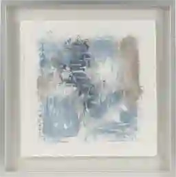 Yes. The soft blue and neutral color palette, combined with the organic textures of rice paper and linen, makes this piece particularly well-suited for coastal homes or transitional spaces. Its abstract nature allows it to bridge the gap between classic comfort and modern flair, while the silver frame adds a touch of contemporary polish that pairs beautifully with cool-toned upholstery or metallic accents.
