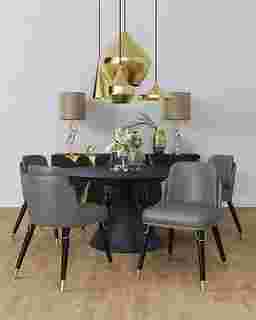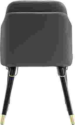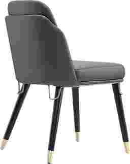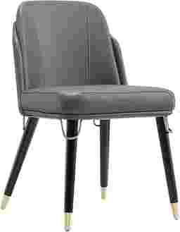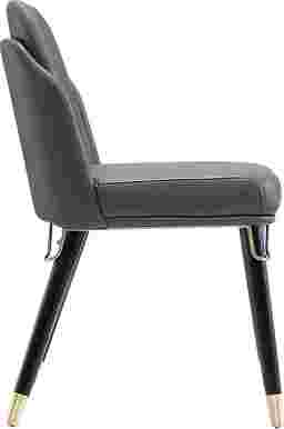 Exquisite craftsmanship and transitional design merges to bring you the Sailworks gray side chair. Clad in rich, luxurious faux leather, this dining chair is inviting and eye-catching. The front and back legs are elegantly embellished with elongated gold metal ferrules and complete with matching accents at the seat's base. Modern details adorn this mid-century inspired seat, creating a versatile look to match a variety of home decor styles. You will fall in love with the sophistication, and comforting construction of the Sailworks gray side chair.