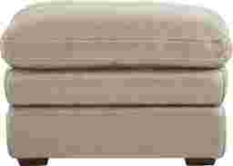 Within the charming warmth of relaxing evening, an atmosphere of honest, lived-in ease takes shape through the Salinger collection's comforting curves and refined craftsmanship. Upholstered in beige top-grain leather where the body touches, this transitional ottoman features three tiers and a pillowy top cushion with contrasting top-stitching for a tailored yet relaxed look. Square block legs finished in a rich brown add a charming final touch to ground the piece. Upholstery: Top grain leather where the body touches with vinyl sides and backs.