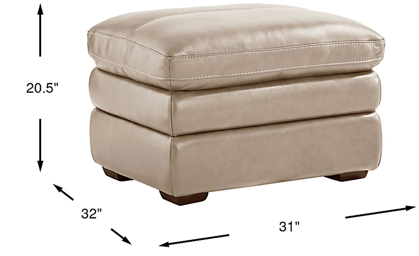 Within the charming warmth of relaxing evening, an atmosphere of honest, lived-in ease takes shape through the Salinger collection's comforting curves and refined craftsmanship. Upholstered in beige top-grain leather where the body touches, this transitional ottoman features three tiers and a pillowy top cushion with contrasting top-stitching for a tailored yet relaxed look. Square block legs finished in a rich brown add a charming final touch to ground the piece. Upholstery: Top grain leather where the body touches with vinyl sides and backs.