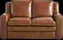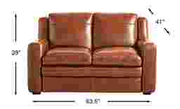 Within the charming warmth of relaxing evening, an atmosphere of honest, lived-in ease takes shape through the Salinger collection's comforting curves and refined craftsmanship. Upholstered in brown top-grain leather where the body touches, this transitional loveseat features sleek track arms and contrasting top-stitching for a tailored yet relaxed look. Pillowy curves are defined by welted seams, and each seat offers indulgent, sink-in comfort. Square block legs finished in a rich brown add a charming final touch to ground the piece. Upholstery: Top grain leather where the body touches with vinyl sides and backs.
