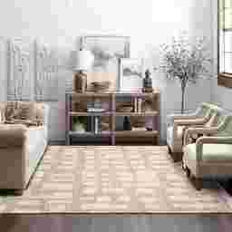 Absolutely. The soft ivory and gray tones are versatile neutrals that complement a wide range of palettes, including beige or earth-toned walls. The abstract geometric design adds sophisticated "visual texture," which helps break up solid colors in a room without being overwhelming. Furthermore, light-colored rugs reflect more light, which can help make a smaller or darker room feel significantly larger and more open.