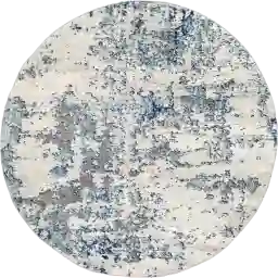 Using a round rug is a classic design technique to soften the "hard" edges of rectangular furniture or square rooms, providing visual contrast and flow. The abstract pattern in blue, gray, and ivory serves as a contemporary focal point that can tie together various color elements in a room. It works beautifully centered under a round pedestal table or used to distinguish a specific zone in an open-concept living space.