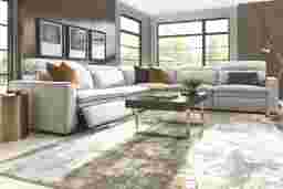 Sleek, chic, and altogether unique, the Drew & Jonathan Salvator Street sectional's spacious seating and seamless functionality is the perfect blend of modern comfort and urban sophistication. Upholstered in a woven fabric, this sectional features stylish track arms and attached double pillow pad seat cushions for a luxurious feel. The dual power reclining feature allows adjustment in the head and footrest for personalized support and the ultimate lounging experience. Upholstery: 100% Polyester.
