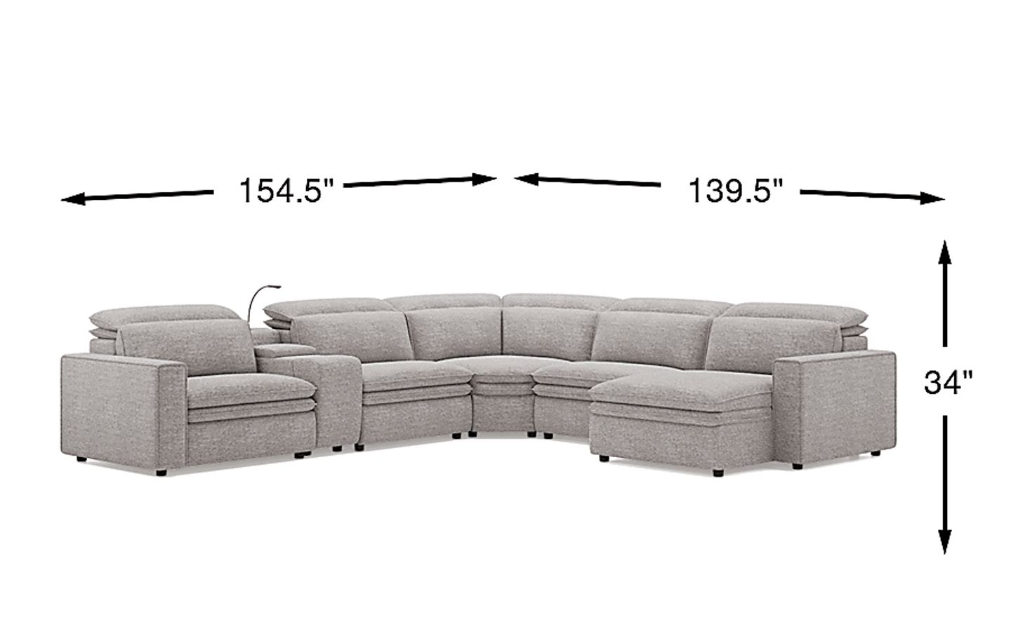 Sleek, chic, and altogether unique, the Drew & Jonathan Salvator Street sectional's spacious seating and seamless functionality is the perfect blend of modern comfort and urban sophistication. Upholstered in a woven fabric, this sectional features stylish track arms and attached double pillow pad seat cushions for a luxurious feel. The dual power reclining feature allows adjustment in the head and footrest for personalized support while the chaise allows adjustment in the headrest for the ultimate lounging experience. The media console includes a storage compartment, cupholders and a reading light for convenience. Upholstery: 100% Polyester.