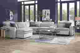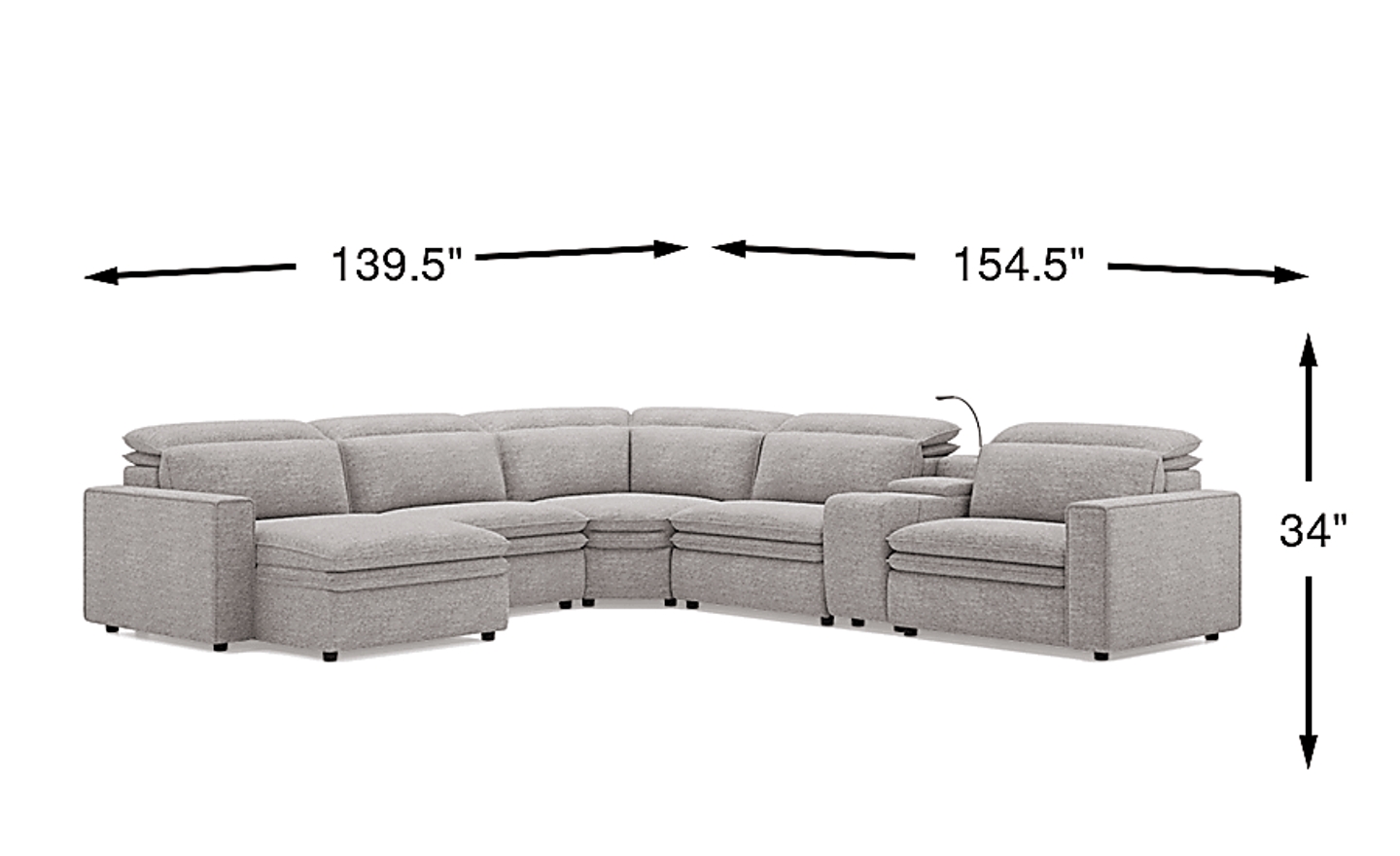 Sleek, chic, and altogether unique, the Drew & Jonathan Salvator Street sectional's spacious seating and seamless functionality is the perfect blend of modern comfort and urban sophistication. Upholstered in a woven fabric, this sectional features stylish track arms and attached double pillow pad seat cushions for a luxurious feel. The dual power reclining feature allows adjustment in the head and footrest for personalized support while the chaise allows adjustment in the headrest for the ultimate lounging experience. The media console includes a storage compartment, cupholders and a reading light for convenience. Upholstery: 100% Polyester.