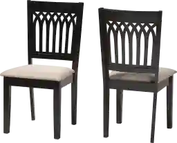 Elegance and positive vibes permeate every occasion with the stunning Salzedo brown dining chair, set of 2. This piece emanates modern style with a solid wood frame padded with plush foam and upholstered in soft fabric for superb seating comfort. The backrest features a beautiful twist on the classic spindle design for a charming, geometric display. The Salzedo incorporates tapered legs for excellent stability and support in sleek design. Crafted with confidence, the Salzedo dining chair brings eclectic refinement to any arrangement. Customer assembly is required.