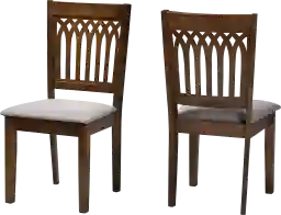 Elegance and positive vibes permeate every occasion with the stunning Salzedo walnut brown dining chair, set of 2. This piece emanates modern style with a solid wood frame padded with plush foam and upholstered in soft fabric for superb seating comfort. The backrest features a beautiful twist on the classic spindle design for a charming, geometric display. The Salzedo incorporates tapered legs for excellent stability and support in sleek design. Crafted with confidence, the Salzedo dining chair brings eclectic refinement to any arrangement. Customer assembly is required.