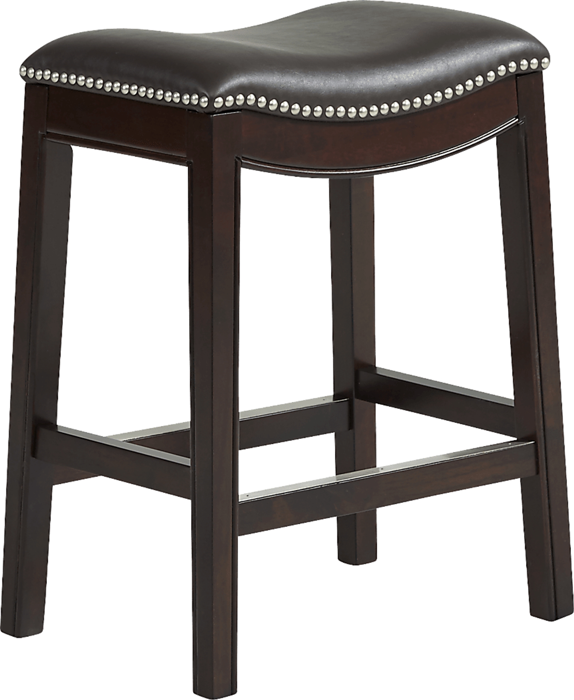 Sleek and stylish, the Samford counter height stool creates a polished atmosphere for mealtime and cocktail hour. Crafted with fine detail, this stool boasts a rich brown finish. Its traditional backless design showcases silver nailhead accents and smooth, leather-like upholstery in brown.