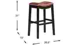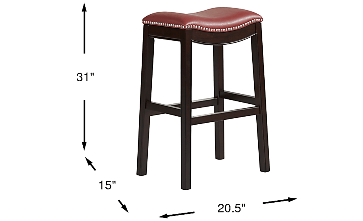 Sleek and stylish, the Samford barstool creates a polished atmosphere for mealtime and cocktail hour. Crafted with fine detail, this barstool boasts a rich brown finish. Its traditional backless design showcases silver nailhead accents and smooth, leather-like upholstery in red.