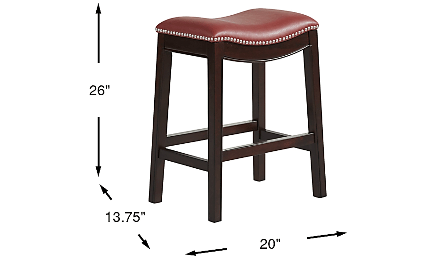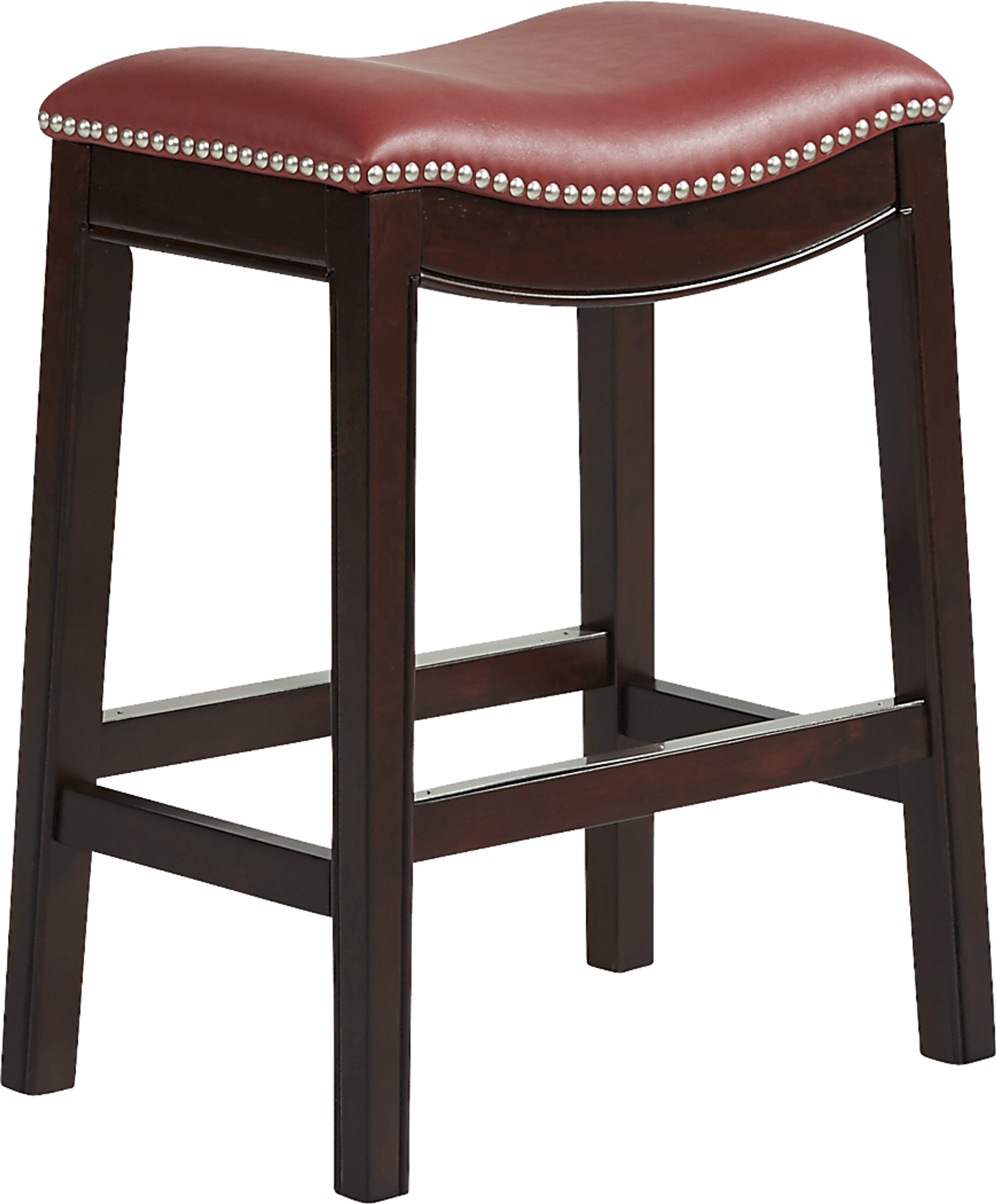 Sleek and stylish, the Samford counter height stool creates a polished atmosphere for mealtime and cocktail hour. Crafted with fine detail, this stool boasts a rich brown finish. Its traditional backless design showcases silver nailhead accents and smooth, leather-like upholstery in red.