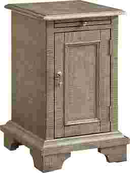 Perfect next to your favorite chair or tucked against a wall, this one door accent cabinet is both elegant and versatile. This one door cabinet has a metallic golden beige textured finish and a pull out shelf on the top perfect for resting a book or phone.. It is finished on all sides so it can float freely into the space.