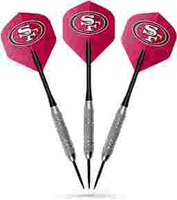 The Fan's Choice San Francisco 49ers dartboard set features your favorite team logo and includes a premium 18-inch tournament sized, self-healing bristle dartboard. Self-healing bristle dartboards are some of the longest lasting boards on the market, since the holes close up after each dart is removed. This hanging dartboard cabinet will look great in your fan cave or any room that your family and friends gather. It's easy to assemble and the cabinet comes preassembled and ready to hang on the wall. Secure the dartboard and you are ready to have hours of enjoyment.
