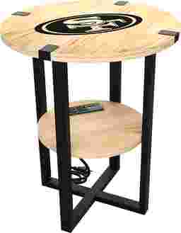 The San Francisco 49ers laser etched round side table features a modern design that seamlessly blends with various decorative styles. It offers a convenient functionality for charging up to four devices at one time. The 2-Tier shelf also provides ample space to store your TV remote and other small items. Whether you are a 49ers fan or simply appreciate well-crafted furniture, this side table is a versatile addition to any room. Customer assembly is required.