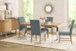San Francisco Natural 5 Pc Dining Room With Blue Upholstered Chairs