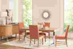 The comfort of familiar gatherings and the joy of hosting settle naturally into the San Francisco collection from Cindy Crawford Home, where organic textures and modern accents come together with relaxed sophistication. Crafted with vintage oak veneers in a natural finish, this contemporary dining table features a rectangular top and sleek U-shaped metal legs in a chrome finish.