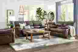 Enjoy the relaxation you deserve with the San Gabriel living room from Cindy Crawford Home. Upholstered in top grain leather where the body touches in a rich brown color, this casual contemporary collection features reclining chaise footrests on the sofa that provide full leg support. Pub-style seat backs with lumbar support, pillowtop arms and contoured bucket seats cushion your body in exactly the right areas so you can truly relax. Contrast stitching adds stylish detail. Upholstery: Top grain leather where the body touches with vinyl sides and backs. Leather is a durable, low maintenance product, however, general regular maintenance is necessary. To keep your leather clean, vacuum it regularly, removing any dust, and clean it with water and a mild non-detergent soap. Accent pillows not included.