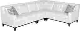 Whether relaxing or entertaining there's plenty of space to lounge in luxury with the San Giovanni sectional. Upholstered in supple top grain leather rendered in a stunning white color, the sectional offers chic seating for up to six people. A contemporary silhouette is created by sleek track arms, tufted back cushions and tapered legs in a warm brown finish. Top Grain Leather Where The Body Touches and Blended Leather (polyurethane fabric blended with leather particles) sides and backs. Accent pillows not included.