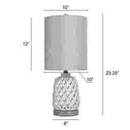 A cool new take on a vintage style, the Sanbriand White Lamp has a standout quality that's equally easy to match. Made to meet exacting artisan standards, this lamp is designed with an open lattice body and fabric hardback shade in white. It's a bold selection for bringing life to tabletops throughout your mid-century inspired decor. Partial assembly may be required.