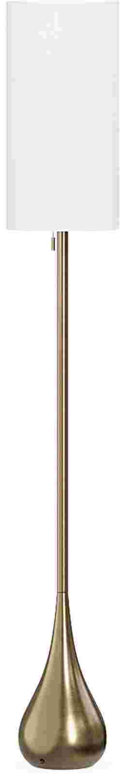 Introduce your home to chic appeal with the Sanda floor lamp. Crafted with a sleek teardrop design, this piece adds a contemporary look to any space. Fashioned for stylish illumination, Sanda features an on and off light pull and an elongated white cylinder drum shade. Its brass chrome-inspired finish completes the modern look. This lamp takes light bulbs up to 100 watts.