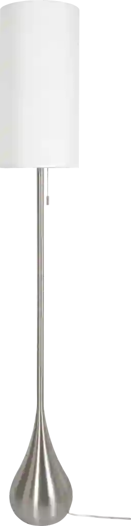 Introduce your home to chic appeal with the Sanda floor lamp. Crafted with a sleek teardrop design, this piece adds a contemporary look to any space. Fashioned for stylish illumination, Sanda features an on and off light pull and an elongated white cylinder drum shade. Its silver chrome-inspired finish completes the modern look. This lamp takes light bulbs up to 100 watts.