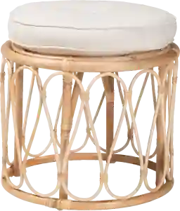 Despite its lightweight and airy appearance, this ottoman features a round, open base designed for maximum stability and support. The curled rattan decor is expertly integrated into the structural frame, creating a durable piece that stands up to daily use as a footstool or seat while maintaining its artisanal look from every angle.
