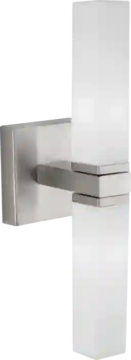 This sconce features two light points housed within rectangular white glass shades. This dual-light configuration is ideal for creating a broader spread of light compared to single-bulb fixtures, making it highly effective for brightening up vanity areas or large entryways.