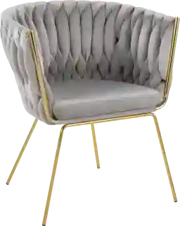 The contemporary design of the Sandcroft dining chair features unique braided velvet upholstery, a padded bucket style seat and sleek tapered metal legs with a gold finish. Use as accent or dining seating, the Sandcroft comes in a variety of colors. Customer assembly is required.