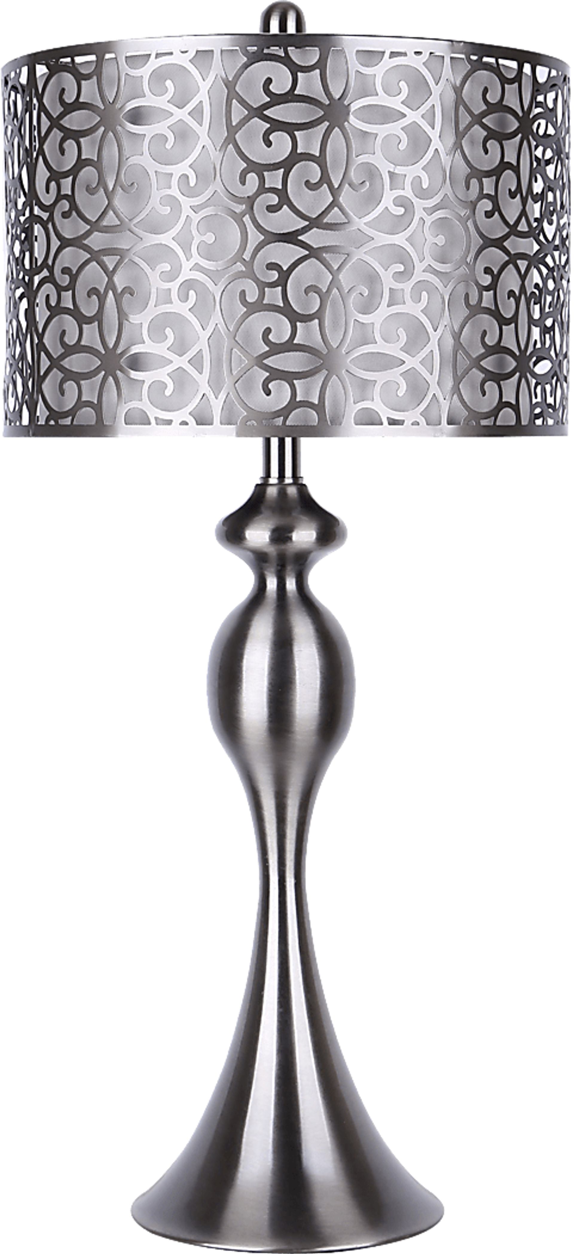 Silver and metallic finishes are highly versatile "new neutrals." This contemporary piece pairs beautifully with cool-toned palettes like grays, blues, and whites. For a more sophisticated look, our stylists suggest layering this lamp with other light sources, such as a matching floor lamp or sleek wall sconces. In a modern apartment, the tall, slender pedestal base adds vertical visual interest without occupying significant surface area on smaller tables.