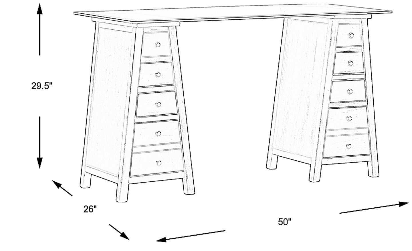 Create a fresh look for your home office with the Sandi desk. The transitional desk is comprised of a 50 x 26 inch glass top with a 1 inch bevel supported by two tapered bases made with solid poplar and birch veneers in a weathered black finish. Three working drawers with antique brass finished knobs offer storage for a variety of items (the top drawer is stationary; there is a double drawer at the bottom). Customer assembly required.