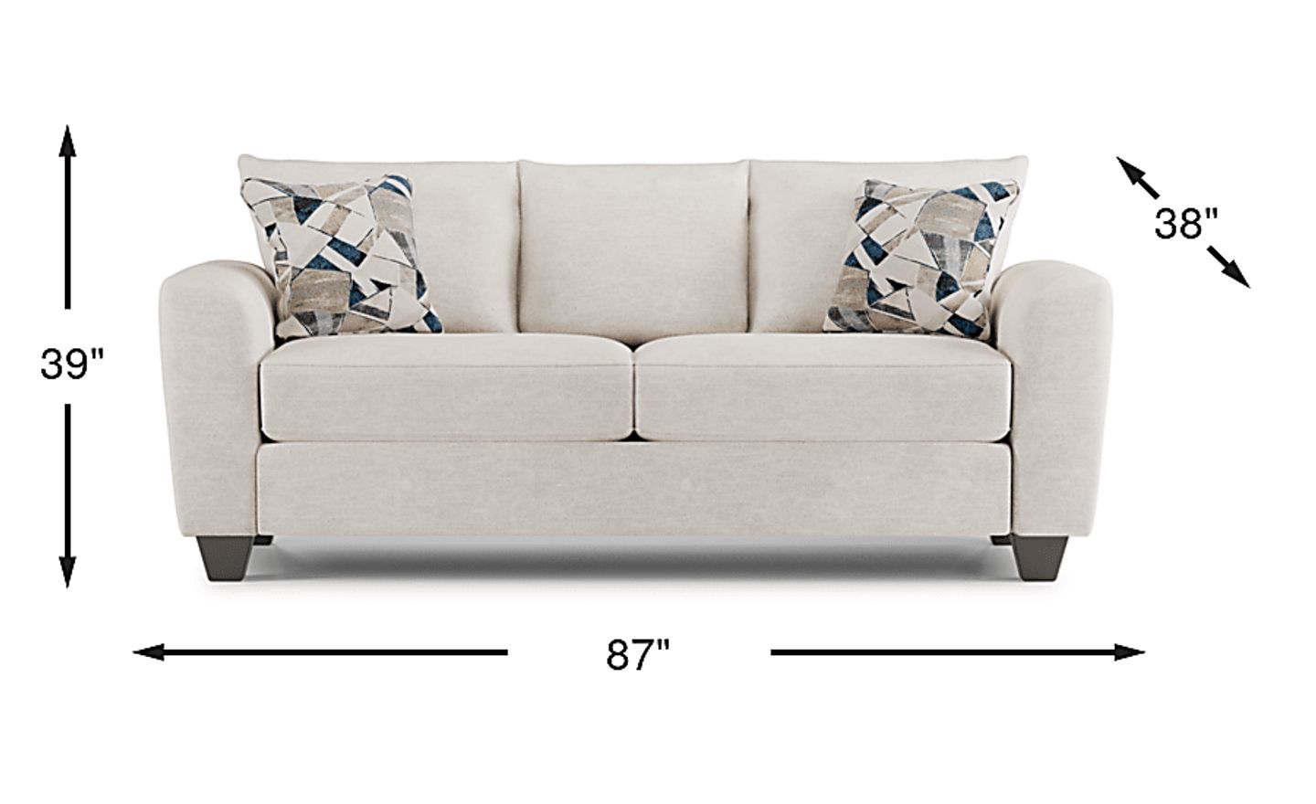 For a stylish contemporary design, choose the Sandia Heights sleeper sofa for your gathering area. Upholstered in soft chenille fabric, its frame boasts chic wedge arms and welted seams for a classy look. This sofa's elegant beige color brings timeless style and comfort to your space. Jacquard accent pillows feature a geometric pattern that adds a pop of texture. For overnight guests, the queen-sized Sealy Royale mattress pulls out to provide a convenient resting place. Loose seat and back cushions help your sofa last longer. Upholstery: 100% Polyester.