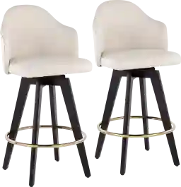 The contemporary charm of the Sandron I counter stool combines sturdy construction with aesthetic appeal. Sleek fabric upholstery is accented by stylish, black wood legs, and a gold metal footrest. This fixed counter height stool has a 360-degree swivel feature. Customer assembly required.