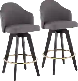 The contemporary charm of the Sandron I counter stool combines sturdy construction with aesthetic appeal. Sleek fabric upholstery is accented by stylish, black wood legs, and a gold metal footrest. This fixed counter height stool has a 360-degree swivel feature. Customer assembly required.