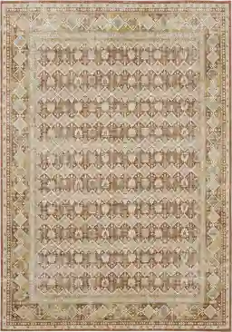 This rug features a traditional ornamental design with a rich, coordinating palette of terracotta, gray, beige, and blue. These earthy tones are highly versatile; the terracotta adds warmth to rooms with neutral gray or beige walls, while the blue and gray accents help it blend seamlessly with both modern and traditional wood furniture finishes.