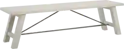 Transform your home into a rustic retreat with the Sangamon dining bench. Made from solid wood, this rectangular dining bench comfortably seats up to three people and features a white wash finish to give it a more natural appeal. Metal stretchers in a washed gray/black iron hue provide support, while also adding a bold accent to complement the look. With its simple design and expert craftsmanship, this wood dining bench brings a country-inspired charm to your dining room. Customer assembly is required.
