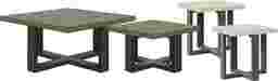 Cool and contemporary, the Sanger table set is perfect for adding style to your home. Crafted of natural materials and mahogany veneers, this collection features gray tabletops and eye-catching antique-finished table legs. A 25" square table nests under a 36" square table, and two end tables complete the set.