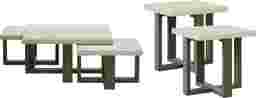 Cool and contemporary, the Sanger table set is perfect for adding style to your home. Crafted of natural materials and mahogany veneers, this collection features gray tabletops and eye-catching antique-finished table legs. Two 25" square tables nest under a 36" square table, and two end tables complete the set.