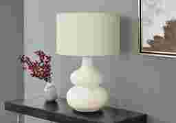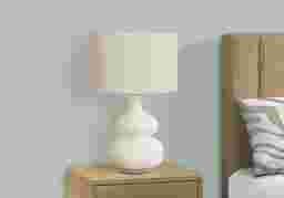 Create a fashionable ambiance with the Sanger Sea Cream Lamp Designed with a modern, curvaceous cream ceramic base and an ivory linen fabric shade, this lamp will brighten up any space while adding decorative accent to your office, living room, or bedroom. This fashionable and on-trend lamp adds both a practical element and a decorative touch to contemporary inspired spaces to brighten any room Partial assembly may be required.
