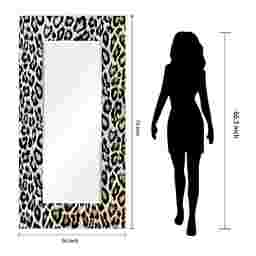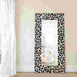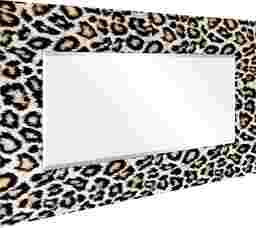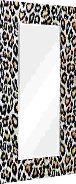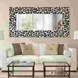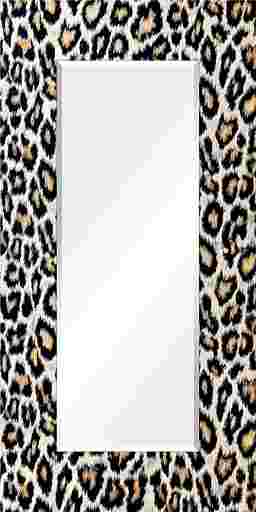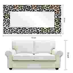 The Saniel mirror features a frame-less, free floating, tempered glassthat was inspired by the French technique of Verre Eglomise in which artist's literally painted the back of clear glass so that when viewed from the front the painting is brought to life under the depth of the glass. This leopard print work of art that same tempered glass and displays a beveled mirror in front of it. Four strong steel hangers are attached to the back of the mirror for quick and easy installation either vertically or horizontally.