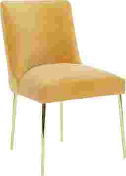 Add a pop of color and drama to your space with the Sanlan mustard velvet dining chair. Featuring a sleek silhouette and shimmering gold legs, it blends timeless elegance with modern luxury. Perfect in pairs, this chair requires customer assembly.