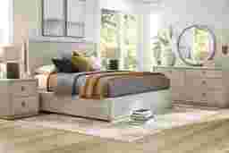 This bed is an excellent choice for a coastal or casual aesthetic. The light gray finish and natural wood-grain texture evoke a sense of weathered driftwood and seaside calm. The contemporary rounded edges and low-profile plinth base further enhance this relaxed yet sophisticated look, making it ideal for creating a peaceful, retreat-like atmosphere in your home.