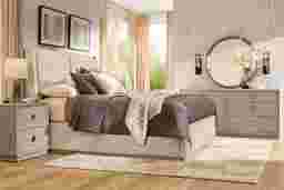 Bold presence and an elevated sense of ease infuse the Drew & Jonathan Santa Clarita bed's sculptural shapes and contemporary style. Fully upholstered in beautiful soothing light gray fabric, this piece showcases powerful lines and curves that create a reassuring calm. The headboard features a subtle tapered wingback that is filled with two pillowy panels for a stunning design. The footboard carries through the rounded edges and offers a sleek plinth style base to ground the look. Mattress and foundation (if required) sold separately.