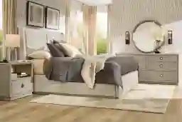 Santa Clarita Light Gray 7 Pc Queen Upholstered Bedroom