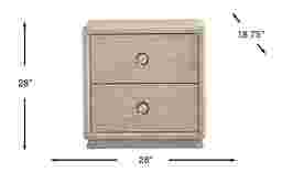 Bold presence and an elevated sense of ease infuse the Drew & Jonathan Santa Clarita nightstand's sculptural shapes. With mindi veneers formed into powerful lines and curves, a reassuring calm comes through its beautiful woodgrain and soothing light gray finish. Contemporary shapes define this piece, with its rounded edges and plinth style base. Two drawers showcase unique metal knob hardware, opening onto plenty of storage space.